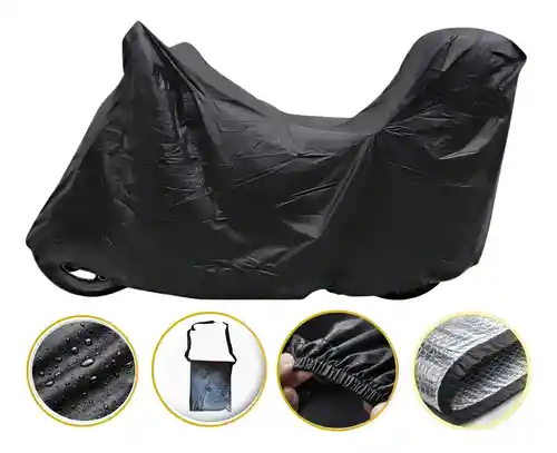 Protege tu motocicleta en todo momento con esta pijama carpa impermeable para moto con espacio para maletero, elaborada en resistente tela tipo Arkansas, ideal para resguardar tu vehículo de la lluvia, el sol, el polvo y la suciedad.