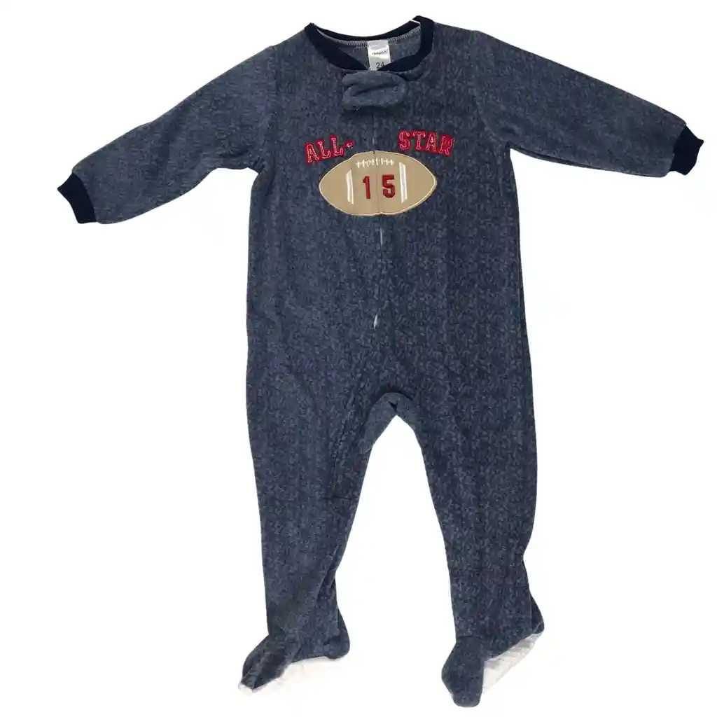Pijama enteriza para bebé talla 18 a 24 meses, confeccionada en tela suave y abrigadora, ideal para brindar comodidad y libertad de movimiento. Su diseño deportivo con aplique de balón y detalle “All Star” es perfecto para pequeños amantes del estilo sporty. Cuenta con cierre frontal que facilita el cambio y pies cubiertos para mantenerlos calentitos durante la noche. El producto incluye: Pijama enteriza de manga larga Diseño deportivo con aplique bordado Cierre frontal práctico Pies cubiertos integrados Ideal para dormir, descansar o estar cómodo en casa 💙👶