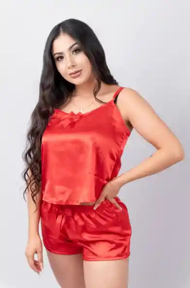 Pijama elaborada en satin con detalle de moños en blusa y short. Tiras graduables COLOR: Azul, Negro, Rojo, Rosado, Vinotinto TALLA: L,M,S