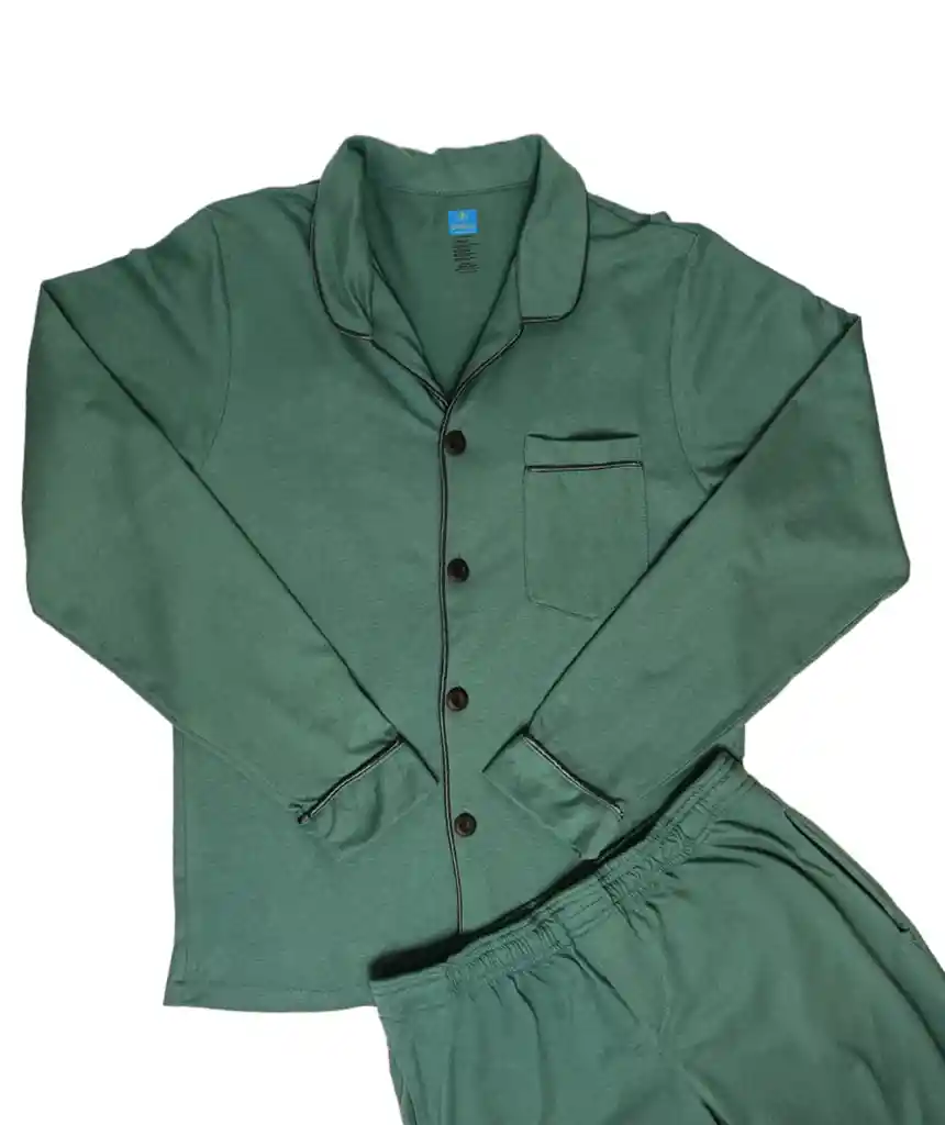 Pijama 100% en algodón, camiseta con botones, manga larga, pantalón con cordón ajustable, bolsillos laterales su material se adapta a la temperatura del cuerpo lo cual la hace ideal para clima cálido o frío.