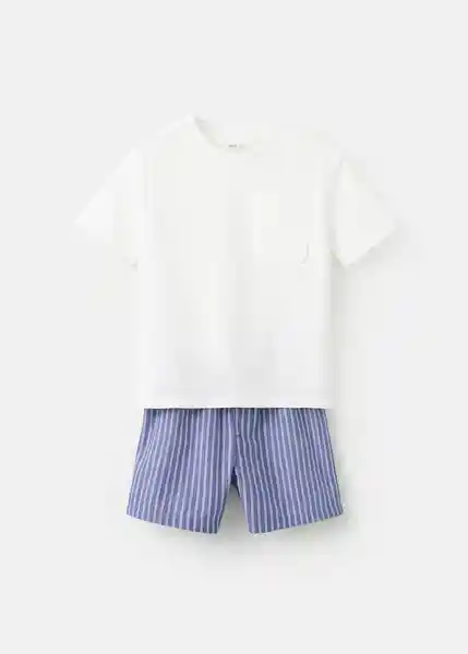 Cintura Elástica Con Cordón Detalle Bolsillo Pecho Pack de Camiseta de Manga Corta y Pantalón Corto de Pijama Pantalón Corto de Rayas Tejido 100% Algodón - 27075965_02.