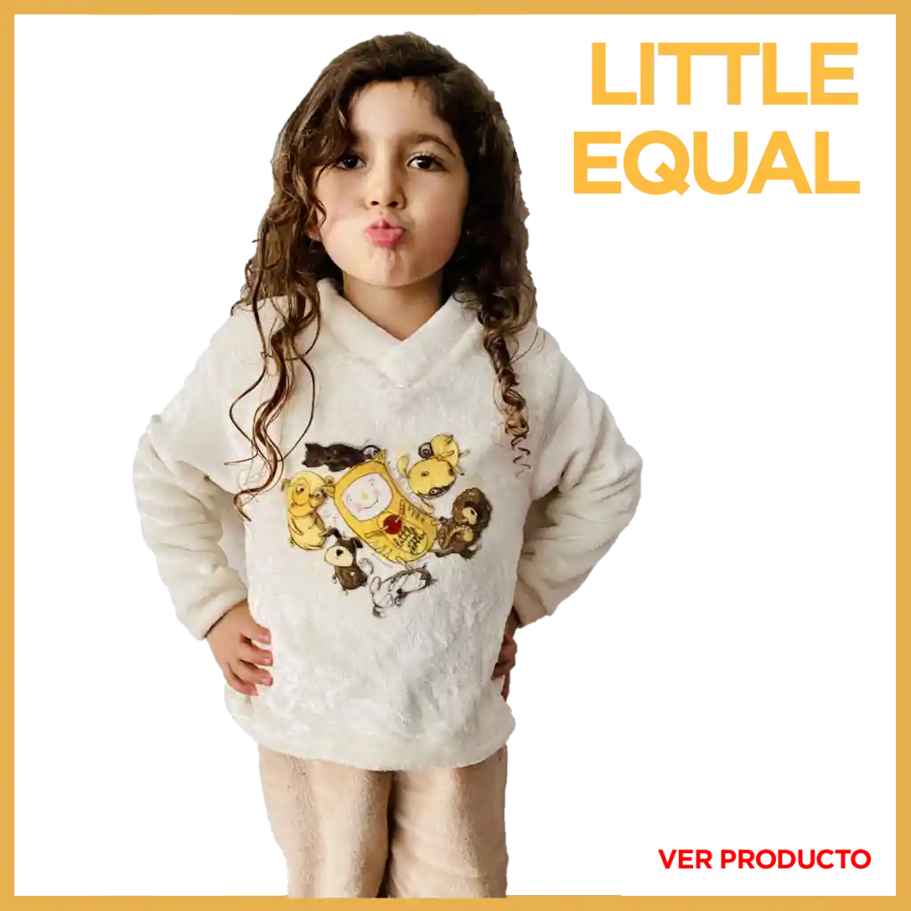 Pijama infantil en fleece de 2 piezas Talla 12, con ilustración y leyenda: Little equal human Hecho en Colombia, Suave, térmica y cómoda. Ideal para noches frías y fácil de lavar.