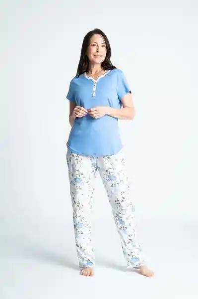 Pijama Corta Manga Corta en Punto Plumón Azul M
