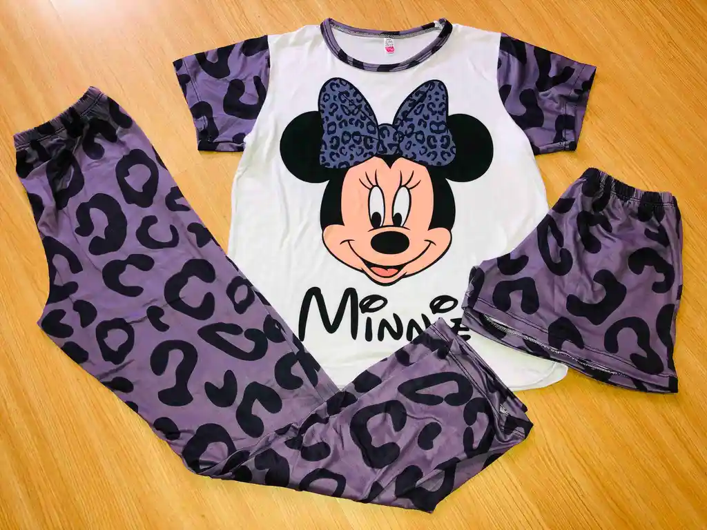 PIJAMA DAMA EN PIEL DE DURAZNO 3 PIEZAS, CAMISA ,PANTALON Y SHORT EN COLOR GRIS MANGA CORTA TALLA S/M