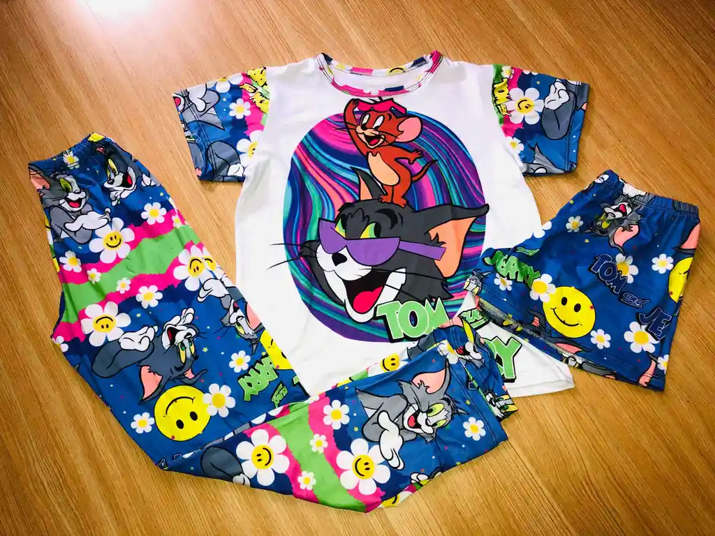 PIJAMA DAMA 3 PIEZAS CAMISA PANTALON Y SHORT MANGA CORTA EN AZUL TALLA S/M