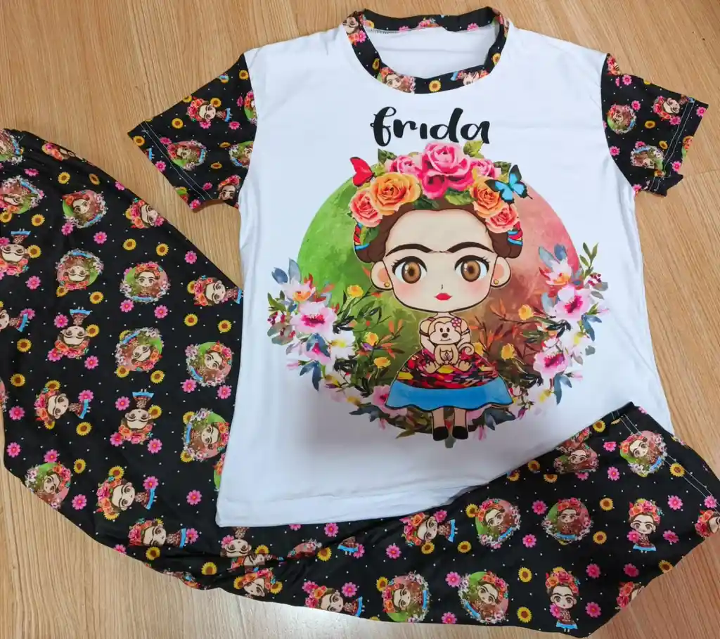 PIJAMA DAMA EN PIEL DE DURAZNO MANGA CORTA NEGRA CON BLANCO TALLA L