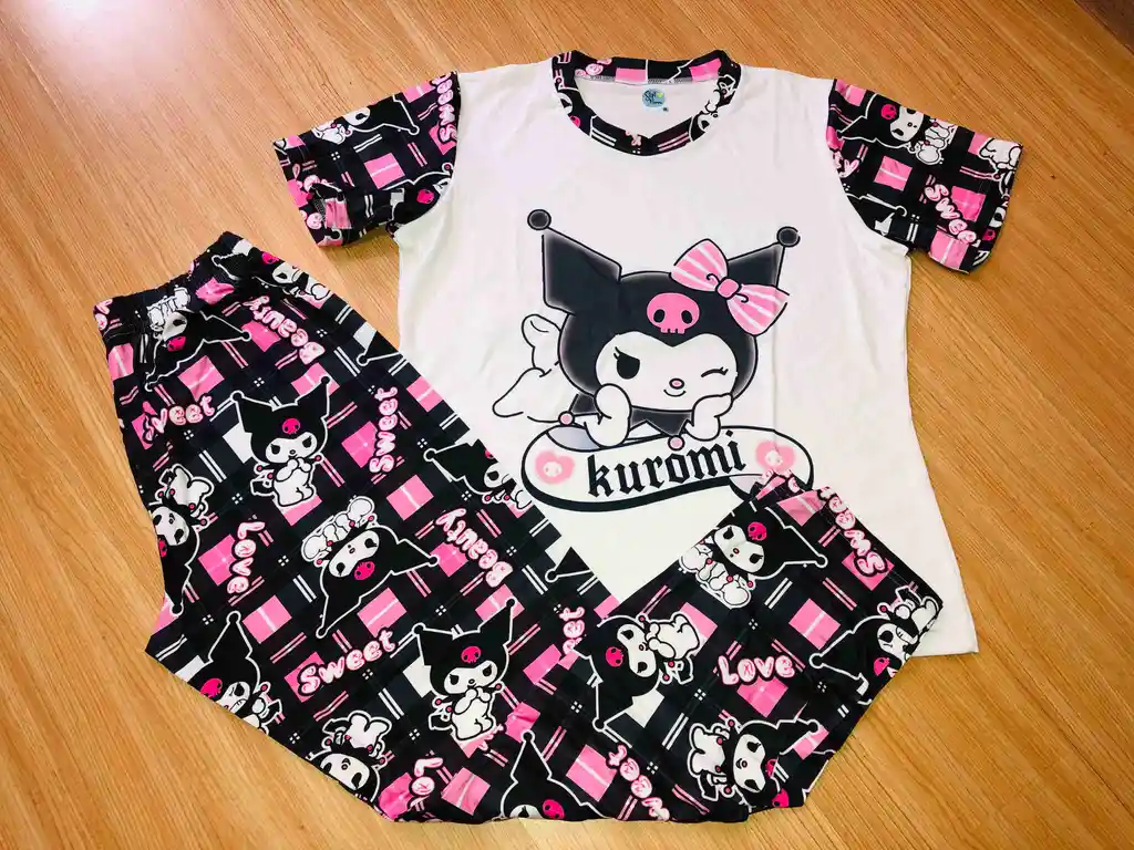 PIJAMA DAMA EN PEIL DE DURAZNO NEGRA MANGA CORTA TALLA M