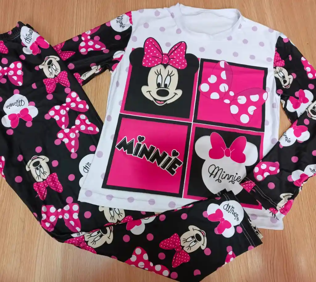 PIJAMA DAMA EN PIEL DE DURAZNO MANGA LARGA NEGRA CON BLANCO TALLA L