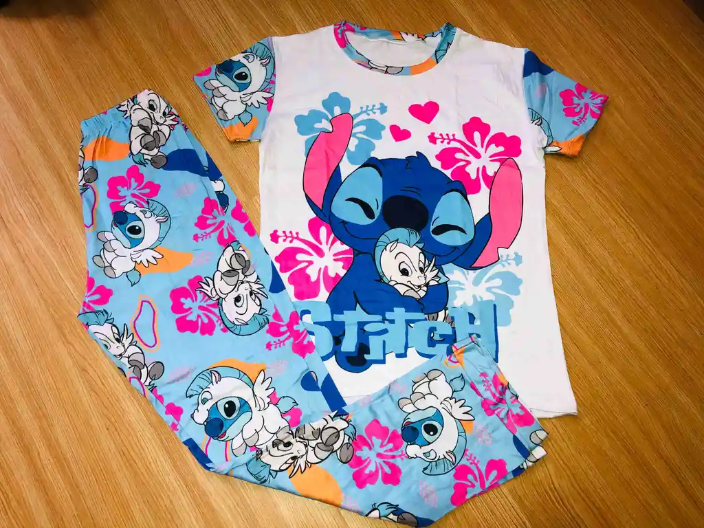 PIJAMA DAMA EN PIEL DE DURAZNO AZUL MANGA CORTA TALLA M