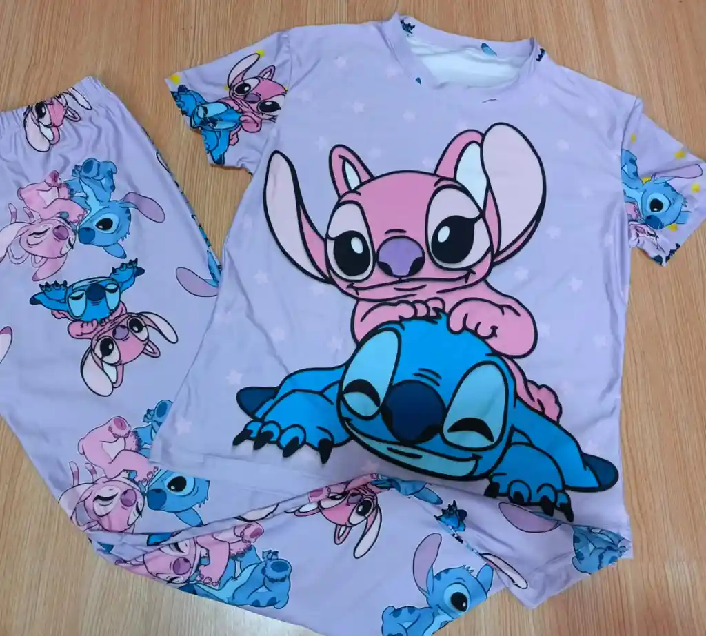 PIJAMA DAMA EN PIEL DE DURAZNO MANGA CORTA LILA TALLA M