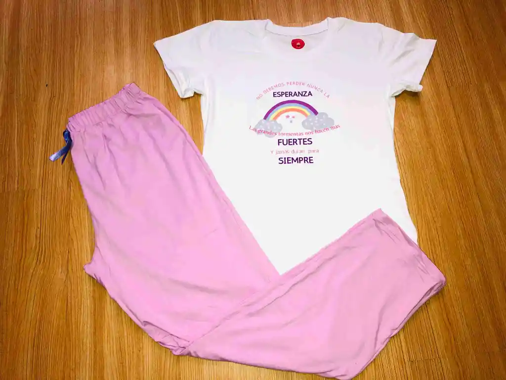 PIJAMA DAMA EN PIEL DE DURAZNO CON MENSAJE CRISTIANO ROSA MANGA CORTA TALLA L
