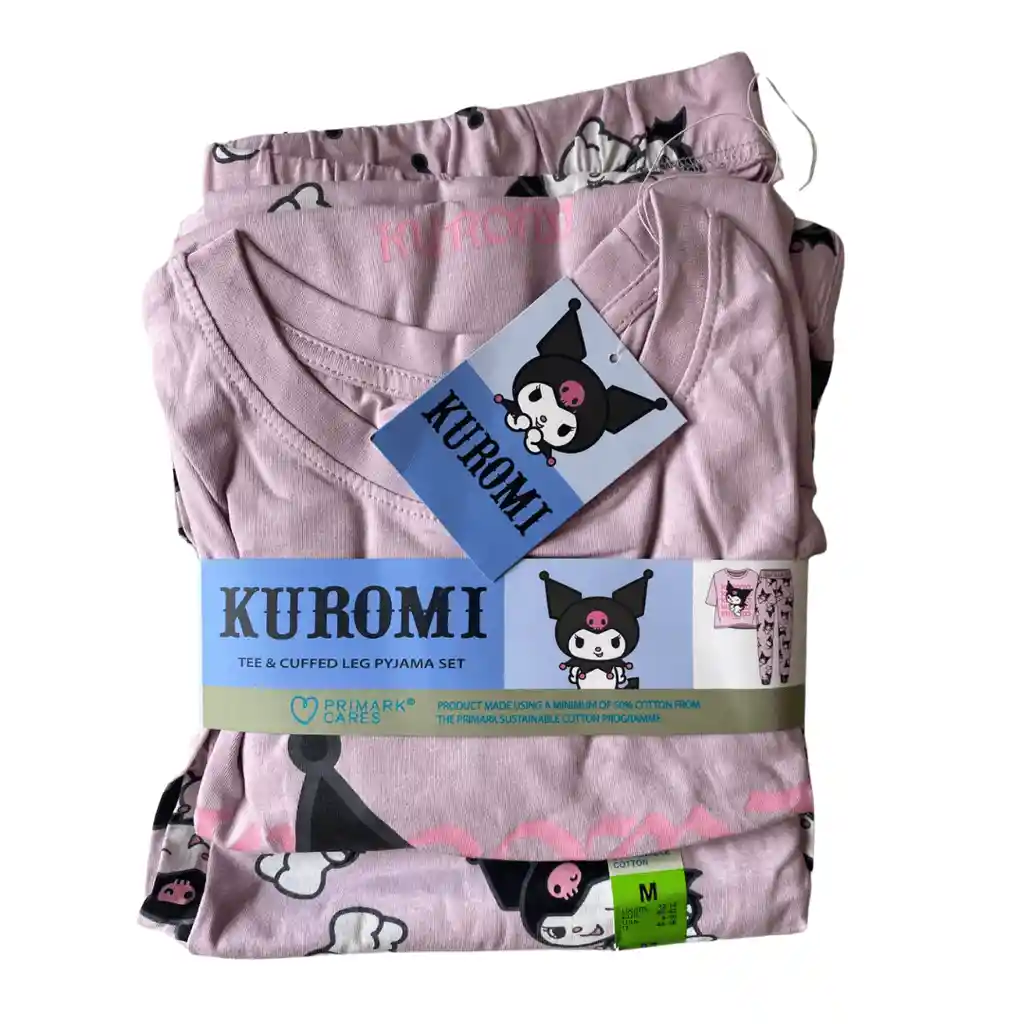 Pijama de Dama Kuromi – Talla M Pijama suave y cómoda con diseño de Kuromi, ideal para las amantes de Disney. Incluye camiseta de manga corta y pantalón largo. Talla S. Perfecta para dormir con estilo y ternura.
