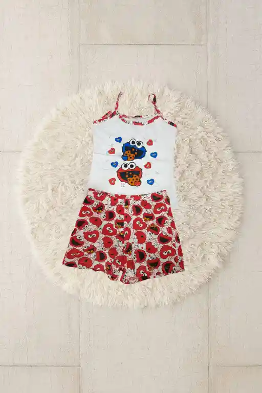 Pijama de 2 piezas estampada color rojo y blanco de elmo . Talla unica