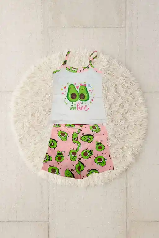 Pijama de 2 piezas color rosada pastel con blanco estampada de aguacate. Talla unica