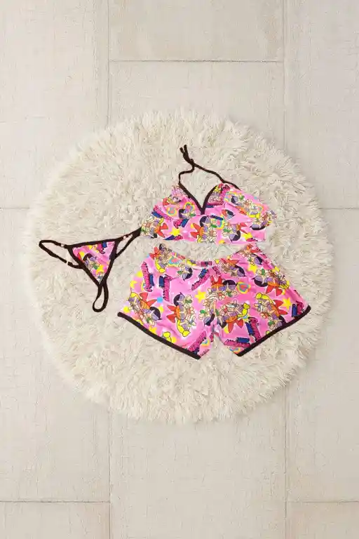 Pijama de 3 piezas color fucsia estampada de las chicas super poderosas. Talla unica