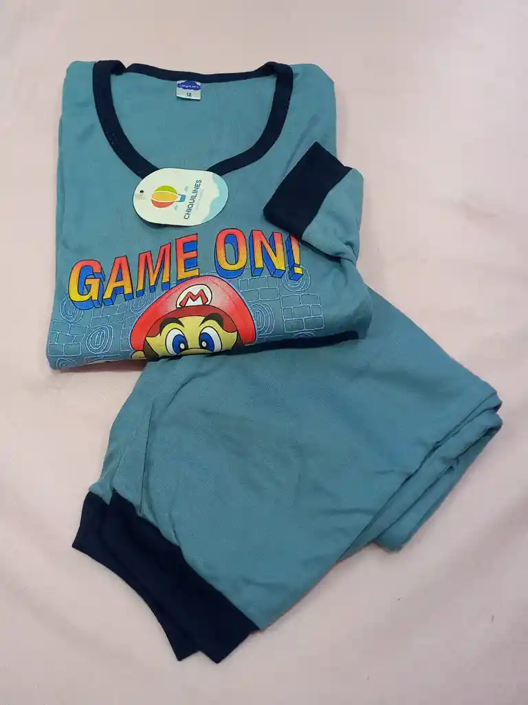 Pijama de Mario Bros, dos piezas, para niño, color azul petróleo, talla 12.