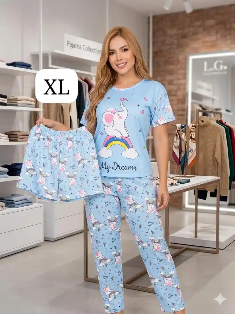 Pijama. De tres piezas. Algodón poliéster licrado