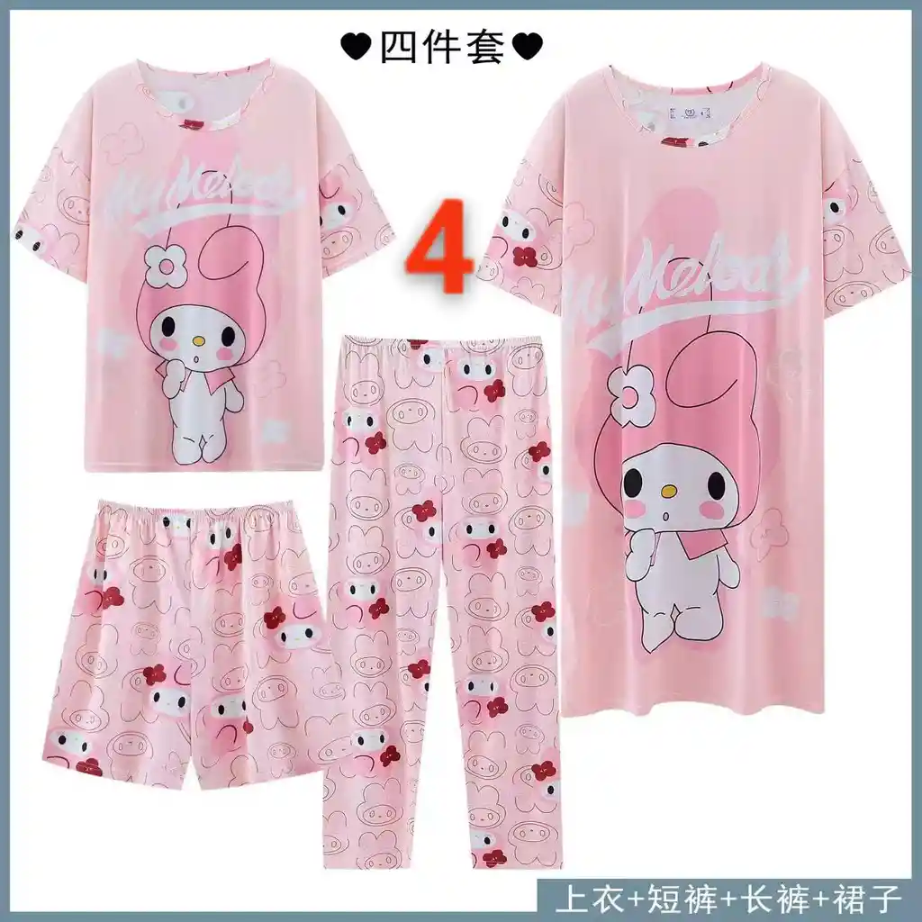 Hermosa Pijama 4 Piezas, Bata, pantalón, short y camisa. de material poli algodón, TALLA UNICA sede hasta la talla SML.