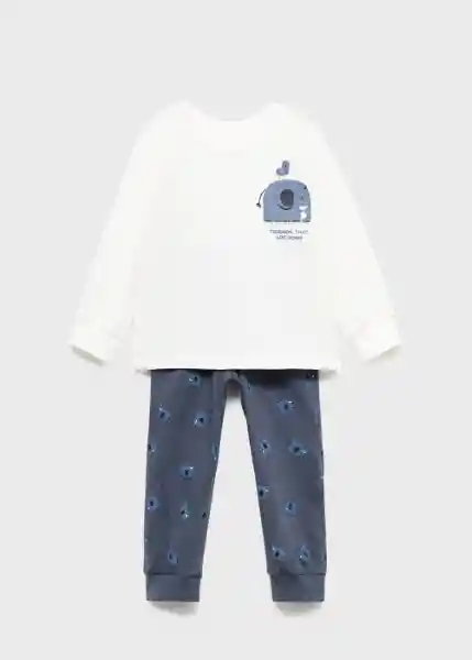 Contiene 2 Unidades. Cintura Elástica Con Cordón Cuello Redondo Diseño Largo Estampado Con Diseño Animal Estampado de Elefantes Manga Larga Pijama de Dos Piezas Tejido 100% Algodón - 17084092_95..