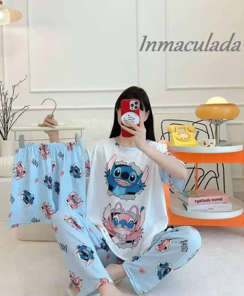 PIJAMA EN TELA PIEL DE DURZANO, SUAVE DE TRES PIEZAS, CAMISETA OVERSIZE, SHORT Y PANTALON TALLA S, M (L DELGADA!?