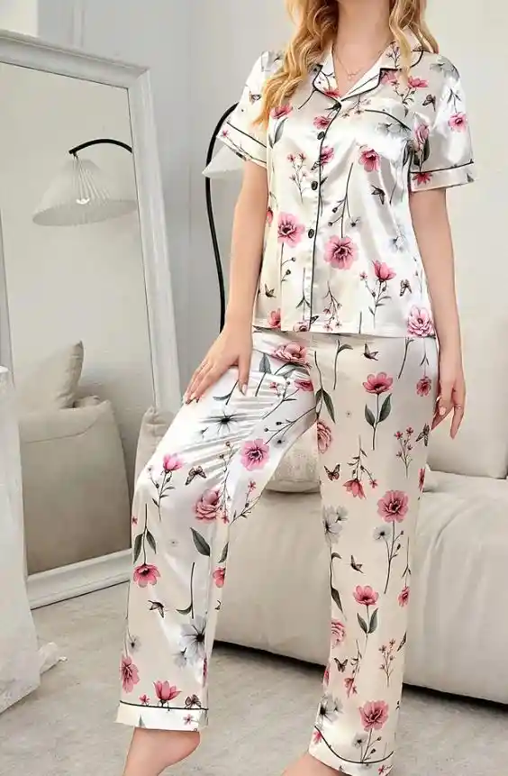 Pijama en satín tela estampada. Talla M