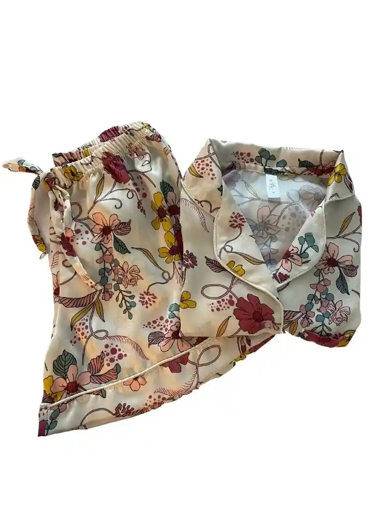 Hermosa pijama en seda suave , ideal para cualquier clima, con hermoso estampado de flores. disponible en talla S , M y L. EN SHORT Y CAMISA MANGA CORTA.