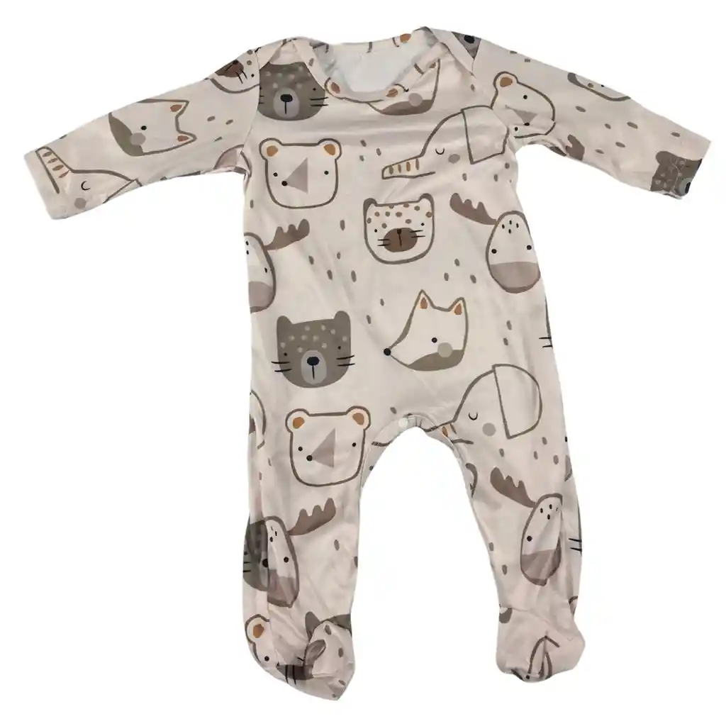 Pijama enteriza para bebé talla 3 a 6 meses, elaborada en tela suave y cómoda, ideal para el descanso diario. Su diseño presenta estampado de animalitos en tonos neutros, perfecto para uso unisex. Cuenta con broches frontales que facilitan vestir al bebé y realizar el cambio de pañal de forma práctica. Los pies cubiertos ayudan a mantener al bebé abrigado durante la noche. El producto incluye Pijama enteriza de manga larga Broches frontales para fácil cambio Pies cubiertos integrados Prenda cómoda, funcional y versátil, ideal para el descanso y uso diario del bebé.