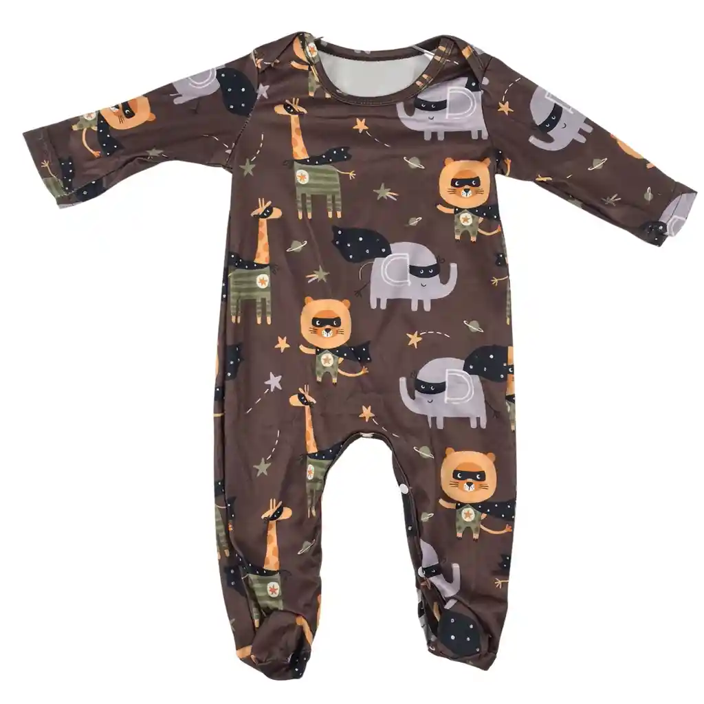 Talla 3-6 meses Pijama enteriza para bebé talla 3 a 6 meses, confeccionada en tela suave, flexible y cómoda, ideal para el descanso y uso diario. Presenta un diseño divertido de animalitos con temática de superhéroes en tonos cálidos, perfecto para estimular la imaginación y brindar un look tierno y moderno. Cuenta con broches en la parte inferior que facilitan el cambio de pañal y mangas largas para mayor abrigo. El producto incluye Pijama enteriza de manga larga Broches inferiores para fácil cambio de pañal Diseño estampado de animalitos estilo superhéroes Prenda práctica, cómoda y original, ideal para dormir o para uso diario del bebé.