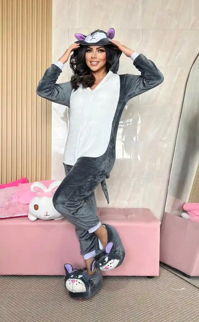 Pijama enteriza, con cremallera adelante y atras.