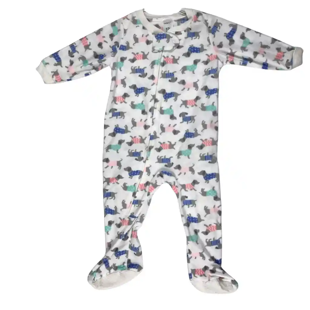 Pijama enteriza para bebé diseñada para brindar comodidad y abrigo durante el descanso. Confeccionada en tela suave al tacto y con un tierno estampado de perritos de colores. Ideal para uso diario y para dormir, fácil de poner y quitar gracias a su cierre frontal. Talla 9 a 12 meses. Contenido del producto Una pijama enteriza para bebé Diseño de manga larga Pies cubiertos para mayor abrigo Cierre frontal para cambio rápido Tela suave y cómoda para la piel del bebé