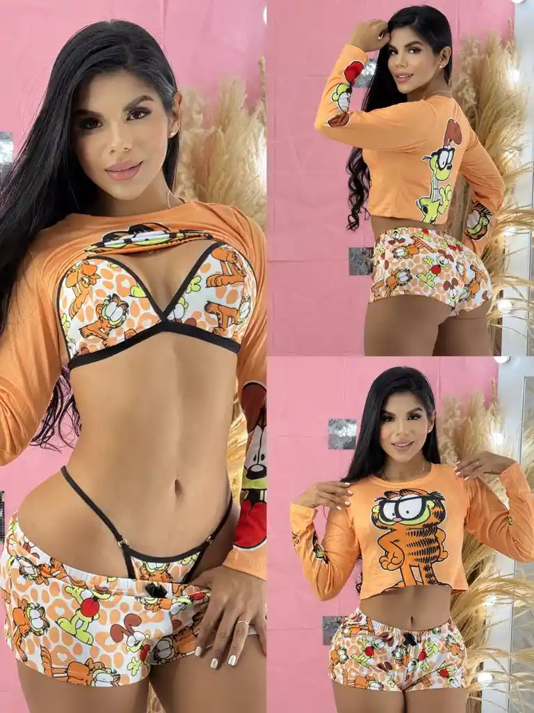 💗 Conjunto 🐾 Estampado animado y juvenil, ideal para quienes aman lo cute 🎀 Top con copas suaves, moño decorativo y tirantes ajustables 👖 Short cómodo con pretina elástica y detalles en contraste 🧵 Tela suave, ligera y fresca al tacto 🌙 Ideal para dormir o estar en casa con estilo 📌 Material: Tela licrada suave 📌 Uso: Pijama / Ropa de descanso 📌 Género: Dama 📌 Estilo: Juvenil – Cómodo – Divertido
