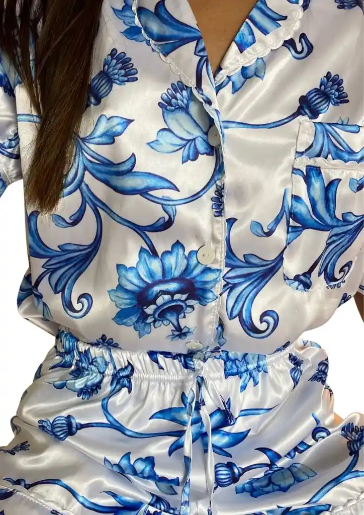 hermosa set de short y camisa manga corta, en tela seda satinada, suave y ideal para todo clima. disponible en talla S y M.