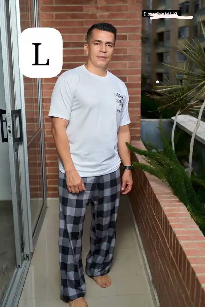 Pijama Hombre Pantalon piel durazno suave y ligera talla L Cuadros