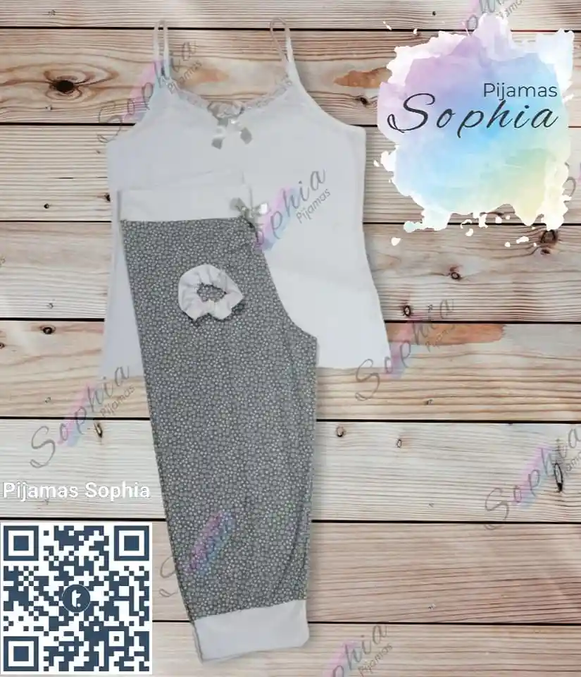 Hermosa Pijama para Dama en Sexi Licra Capri de tiras talla S color Blanco.