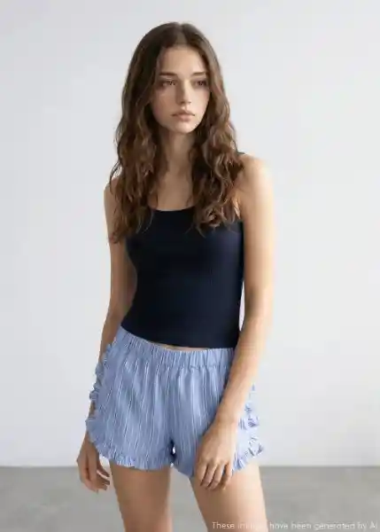 Contiene 2 Unidades. Camiseta de Tirantes Cintura Elástica Detalle de Volantes Pantalón Corto Tejido 100% Algodón - 27094092_56.
