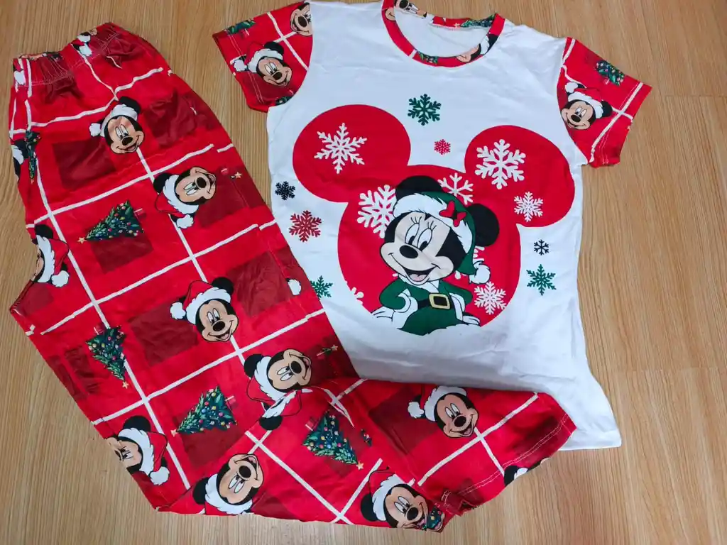 PIJAMA EN PIEL DE DURAZNO MANGA CORTA ROJA CON BLANCO TALLA L-XL