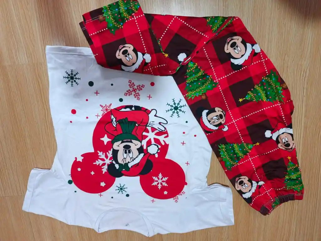 PIJAMA EN PIEL DE DURAZNO MANGA CORTA ROJA CON BLANCO TALLA XL