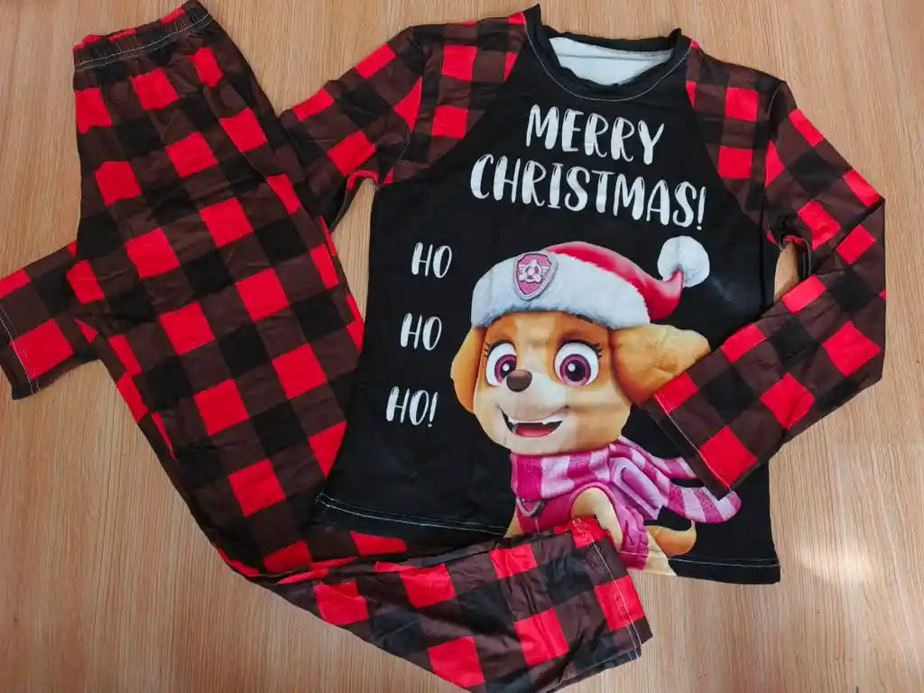 PIJAMA EN PIEL DE DURAZNO MANGA LARGA NEGRA CON ROJO TALLA 2
