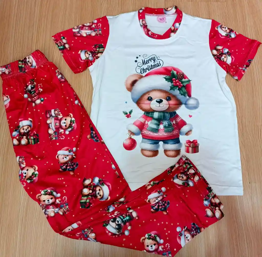 PIJAMA EN PIEL DE DURAZNO MANGA CORTA ROJA CON BLANCO TALLA 10