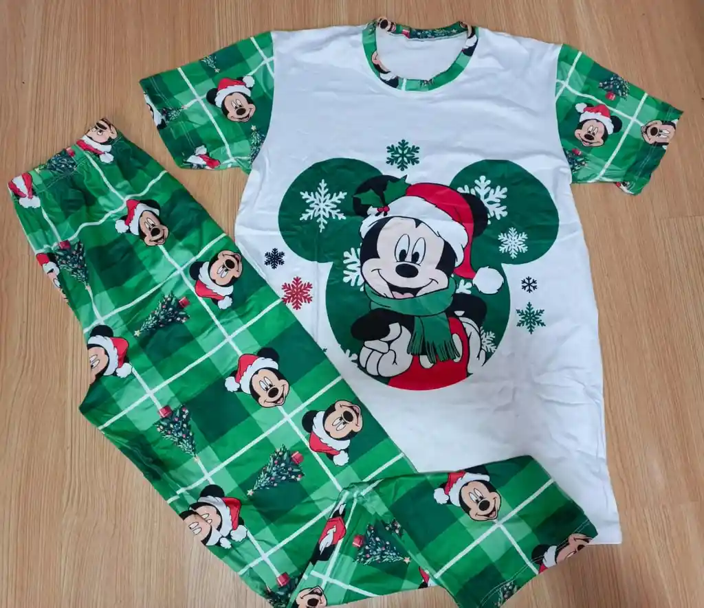 PIJAMA EN PIEL DE DURAZNO MANGA CORTA VERDE CON BLANCO TALLA 6-8