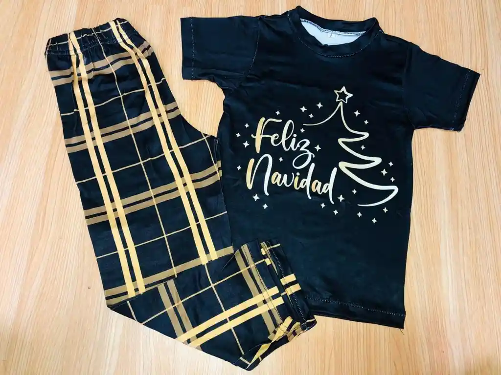 PIJAMA NAVIDAD NINFANTIL NEGRA CON DORADO MANGA CORTA TALLA 2-4