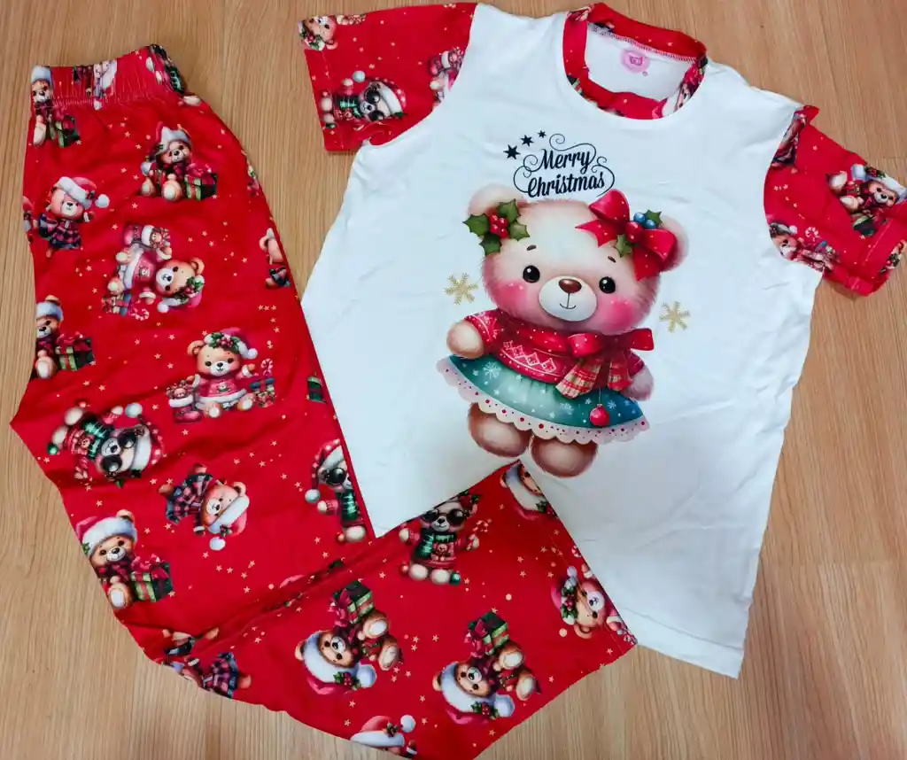 PIJAMA EN PIEL DE DURAZNO MANGA CORTA ROJA CON BLANCO TALLA 8