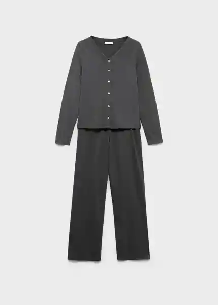 Contiene 2 Unidades. Cierre Delantero Con Botones Cintura Elástica Con Cordón Cuello Pico Diseño Liso Diseño Recto Manga Larga Camiseta y Pantalón de Pijama Pantalón Largo Tejido 100% Algodón - 17054776_95.