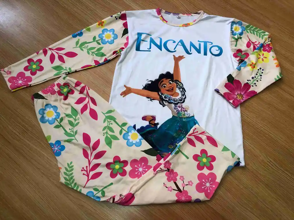 PIJAMA NIÑA EN PIEL DE DURAZNO AMARILLO MULTICOLOR MANGA LARGA TALLA 8