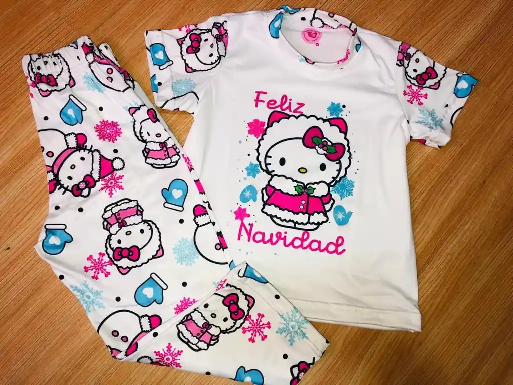 PIJAMA NIÑA EN PIEL DE DURAZNO MANGA CORTA BLANCA NAVIDEÑA TALLA 4