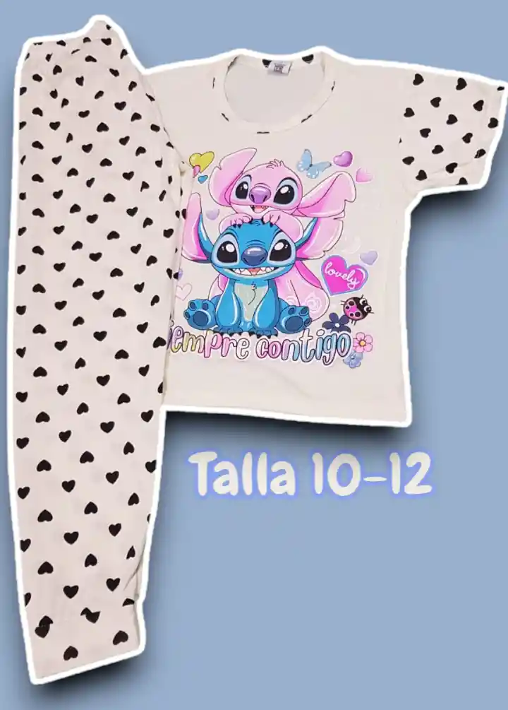 Hermosa Pijama dos piezas para niña TALLA 10-12 manga corta y pantalón en material algodón Luminosa.
