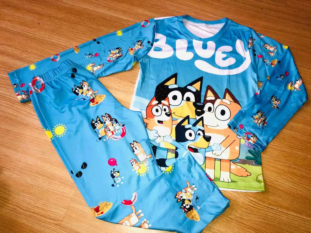PIJAMA NIÑO EN PEIL DE DURAZNO AZUL MANGA LARGA TALLA 10