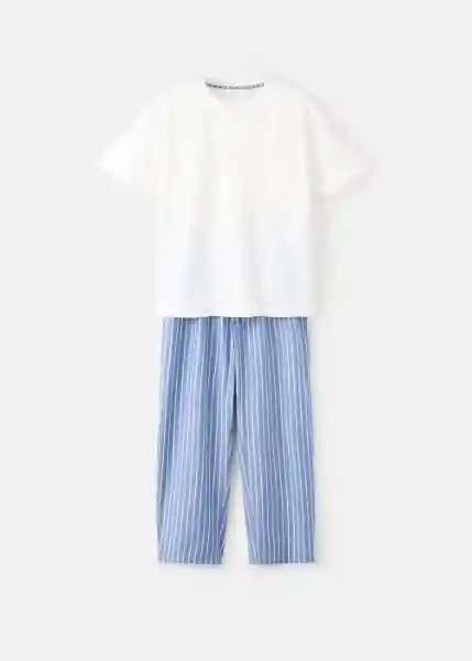 Contiene 2 Unidades. Camiseta 1 Und + Pantalón 1 Und. Camiseta de Manga Corta Cintura Elástica Con Cordón Pijama Largo Pantalón Largo de Rayas Tejido 100% Algodón - 17095822_02.