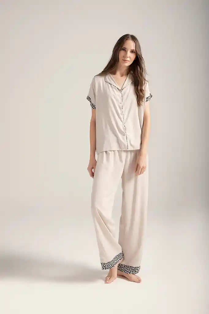 Pantalon Largo Camisa Con Botones Manga Larga 1590022L Arena 100%Viscosa