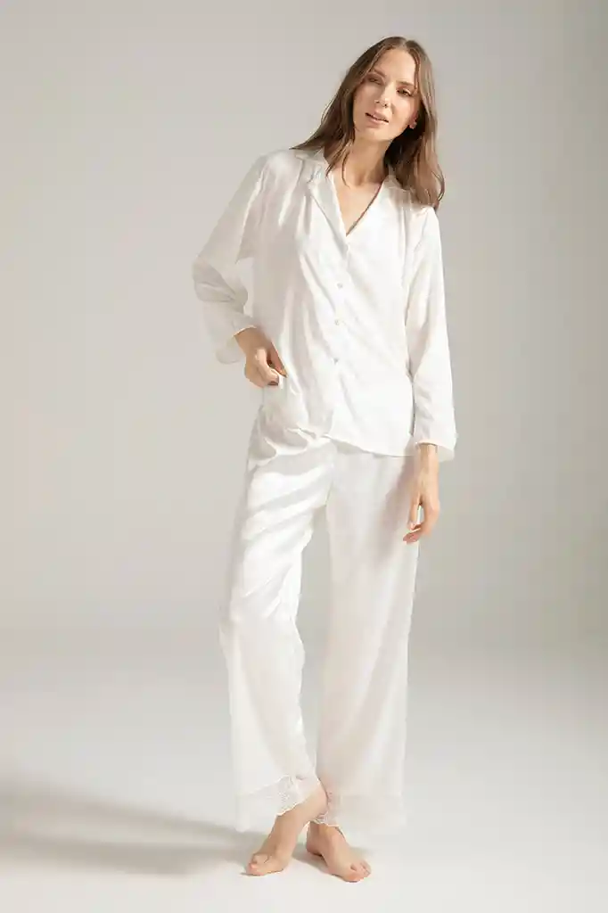 Pijama Pantalon Largo Dama Talla M 100%Poliester Off White